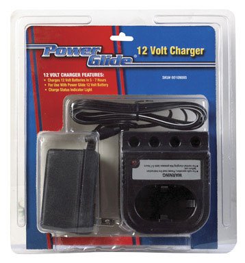 Sold as each. Replacement 12V charger. To be used with any Powerglide 12V battery (SKU # 2105062). Clamshell. Manufacturer's number: 60109005. Country of origin: China. Distributed by Ace Trading-Drills.